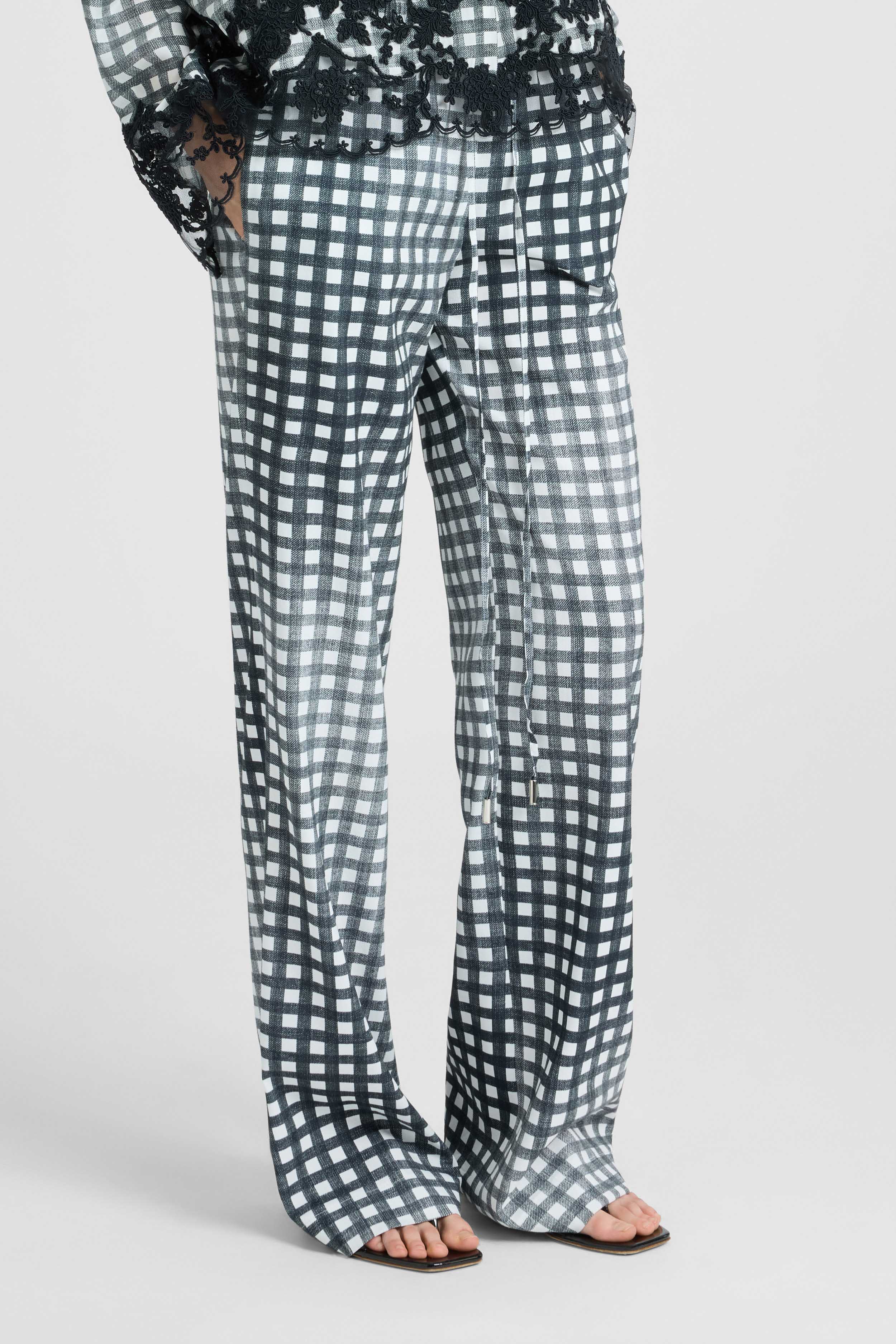 Classic Pajama-Style Trousers in Viscose with Vichy Print