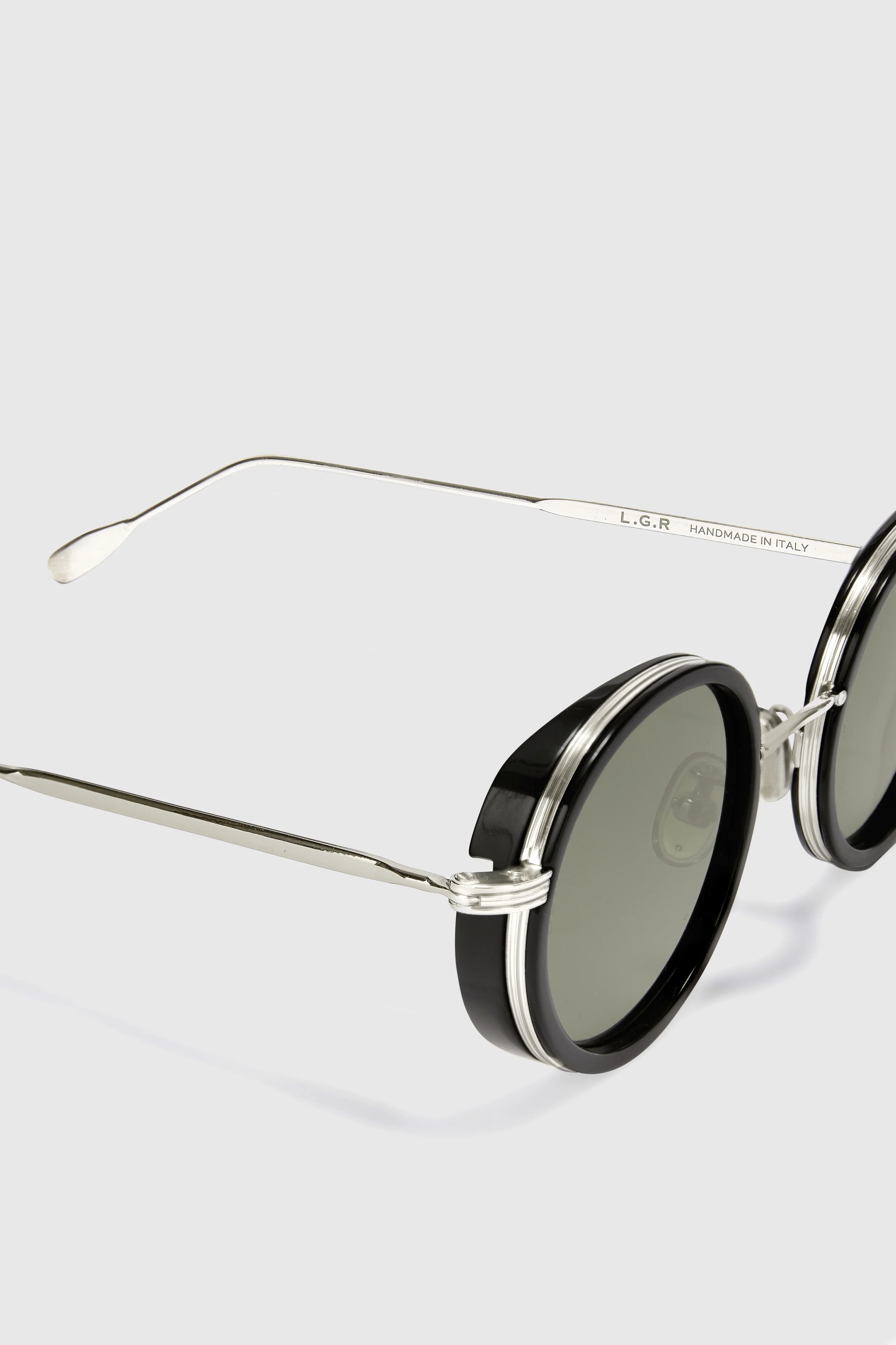 The “Reunion Metal Explorer” sunglasses, an iconic, round L.G.R. model, have been reworked for Ermanno Scervino with a black frame and silver metal details.