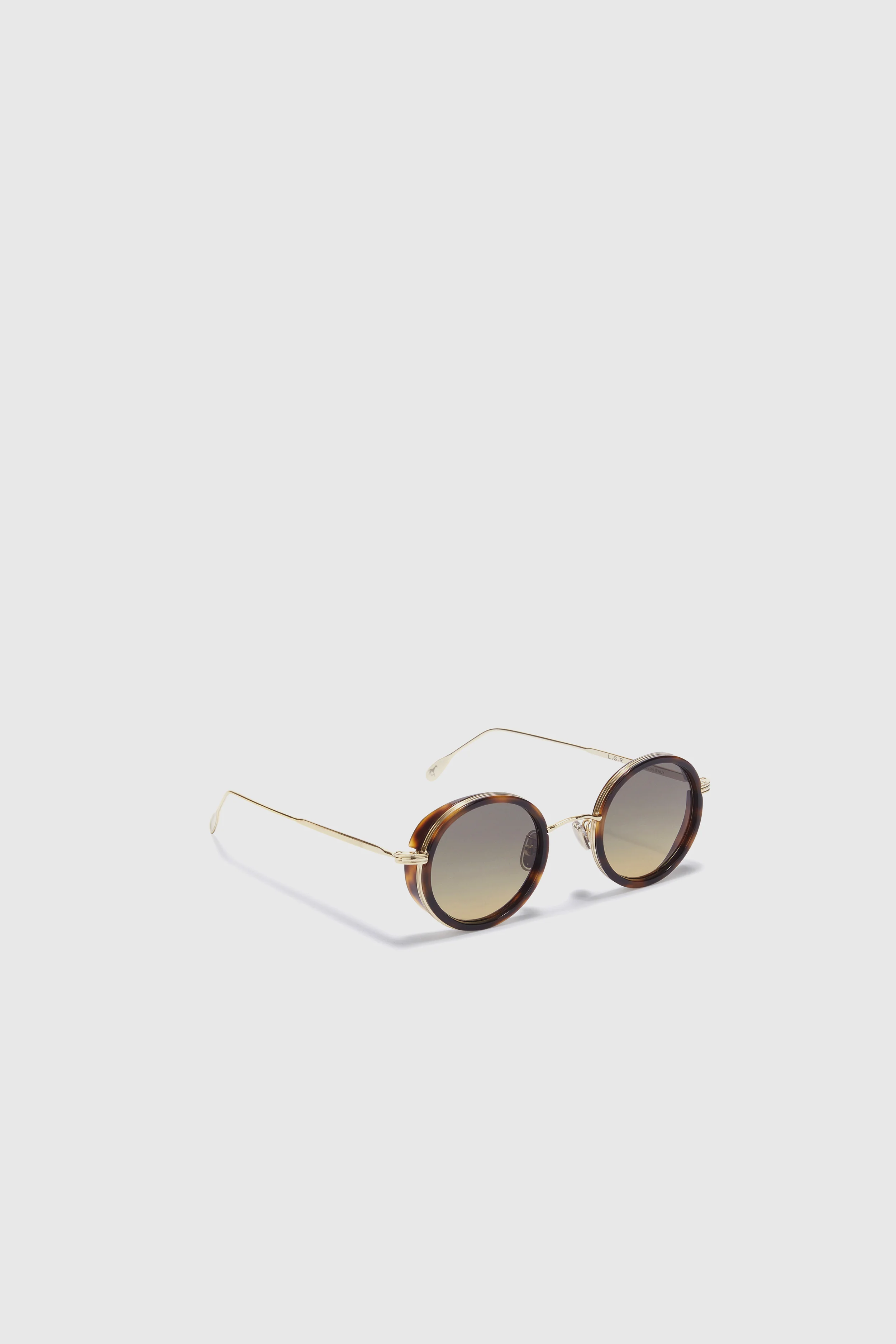 The “Reunion Metal Explorer” sunglasses, an iconic, round L.G.R. model, have been reworked for Ermanno Scervino with a tortoiseshell frame and gold metal details.
