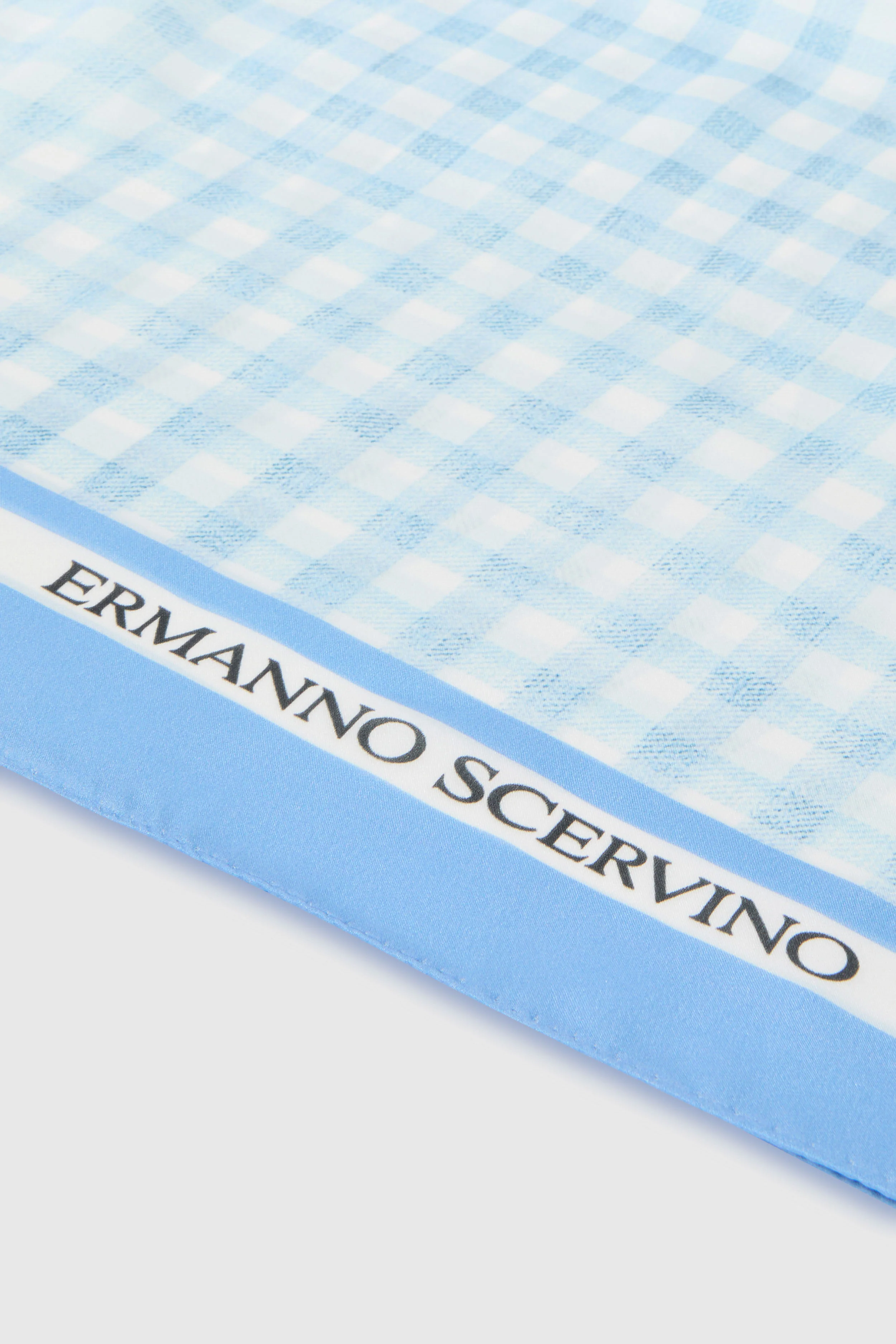 Square silk stole with white and blue vichy print