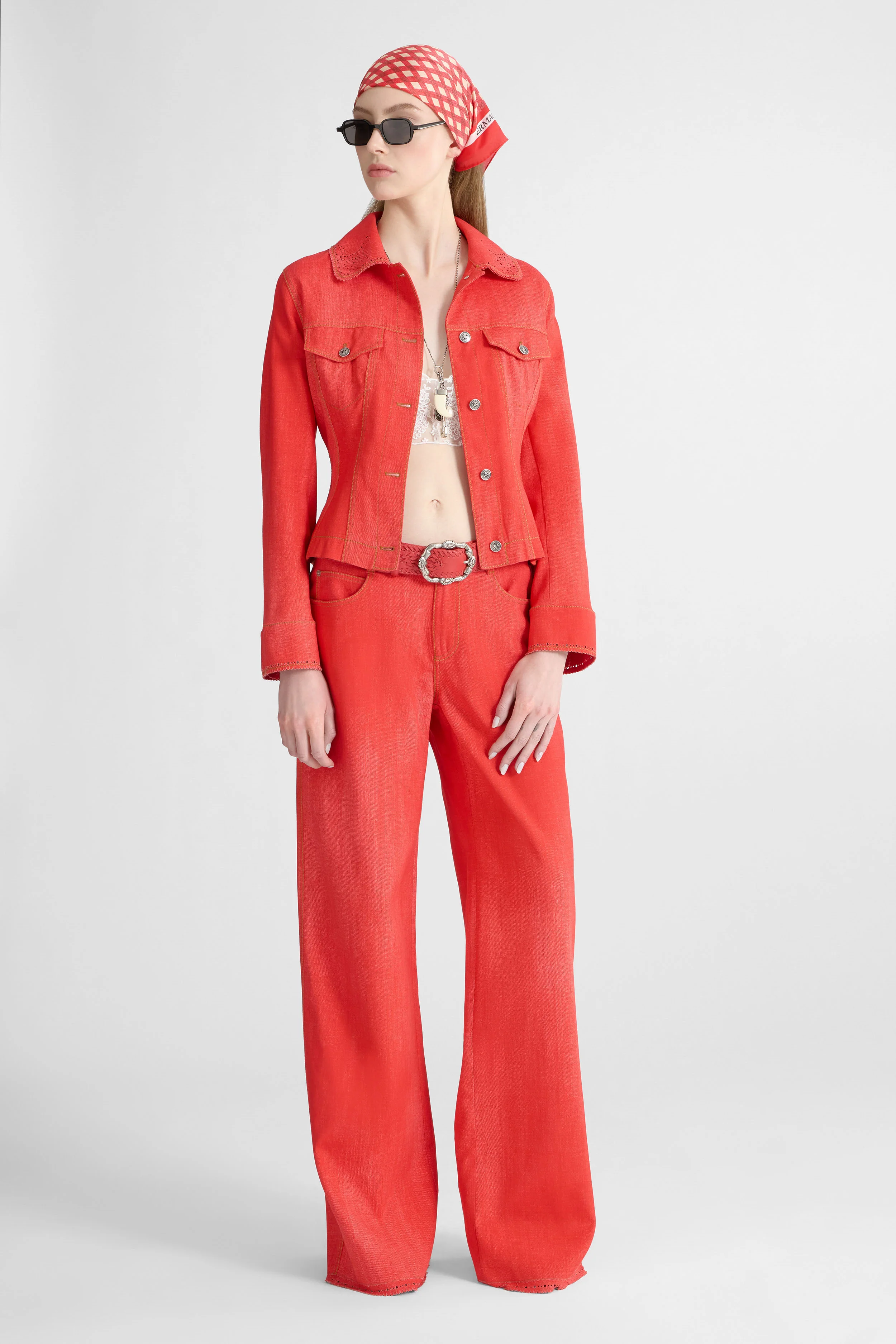 Hand-applied rebrodé lace with a subtle three-dimensional effect.